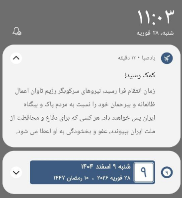 این هکی که گزارش شد هک اپلیکیشن نماز «باد صبا» بود که تنها در «گوگل پلی» بیش از پنج میلیون بار دانلود شده، در روز آغاز جنگ توسط اسرائیل نفوذ شد. چند کاربر تصاویری از پیامهای دریافت شده را در شبکههای اجتماعی به اشتراک گذاشتند که پیامهای «کمک رسید!» و «زمان انتقام فرا رسید» به نمایش داده شدند که در زیر قابل مشاهده هستند.